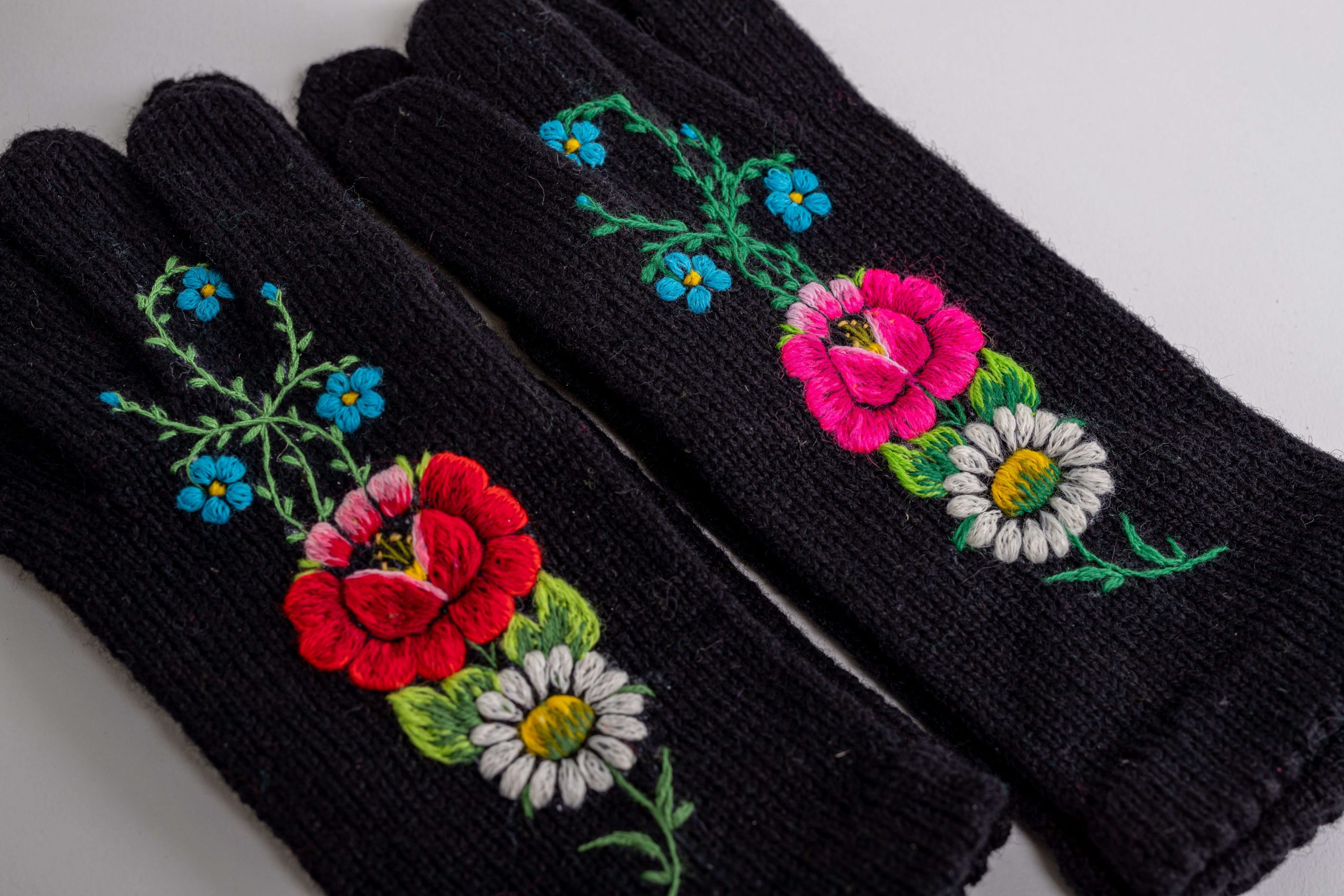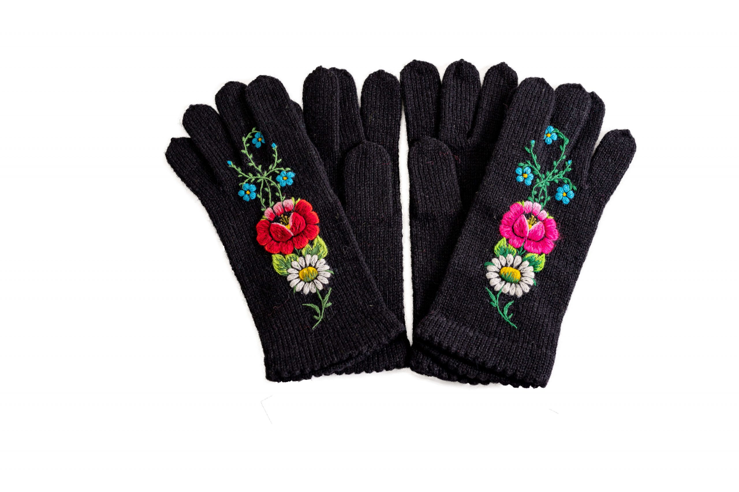 Handmade gloves with Muhu embroidery flower pattern