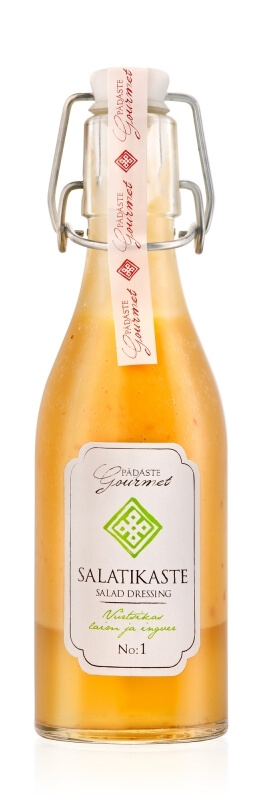 Golden yellow salad dressing with a hint of ginger goes well with green salads, also in marinades for poultry and fish. Like all Pädaste Gourmet products, our salad dressings contain no emulgators or artificial preservatives.