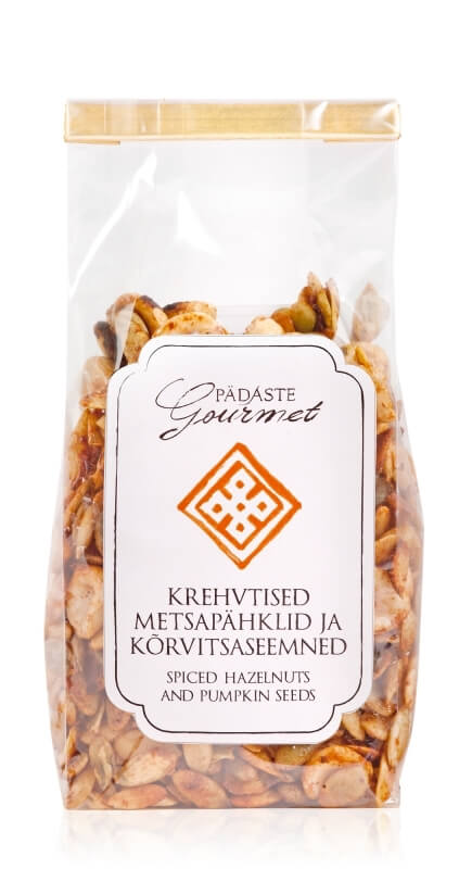 Hot snack from heaven! Hazelnut and pumpkin seeds roasted with spices. Enjoy with a glass of cold beer.