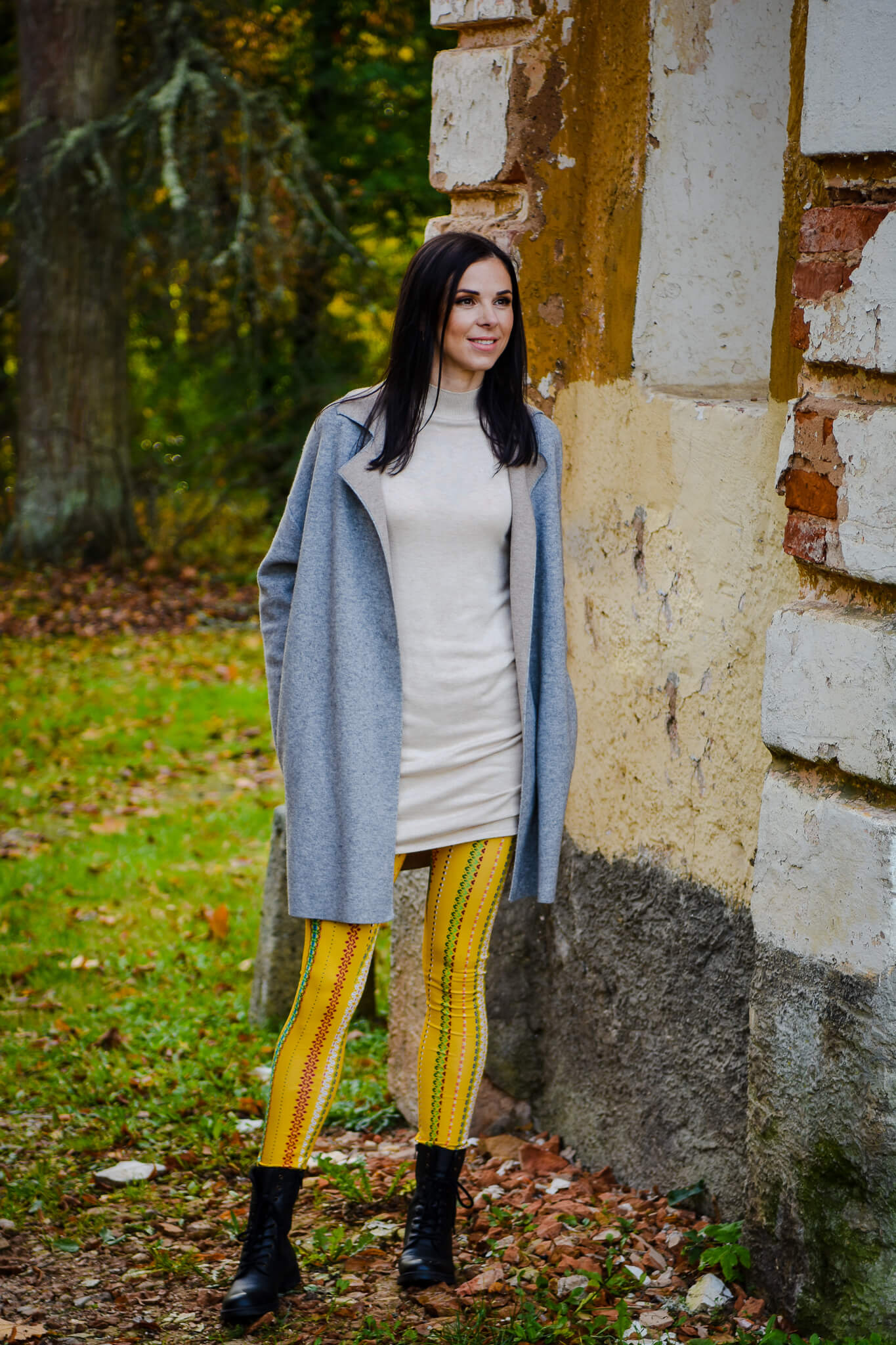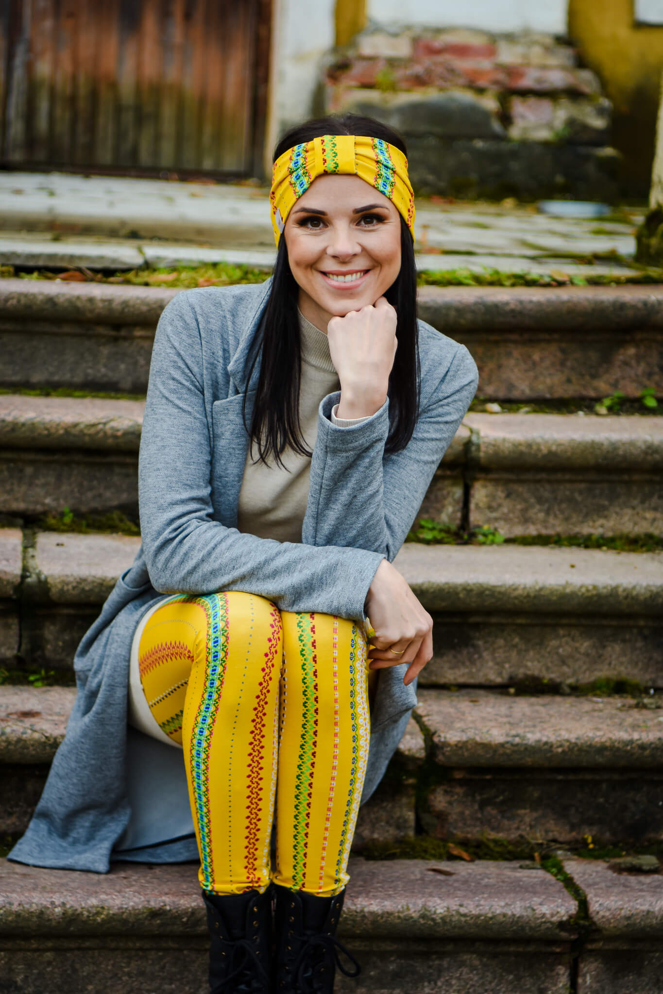 Women´s Leggings Pillekas with Traditional Muhu Yellow Skirt Stripes Pattern