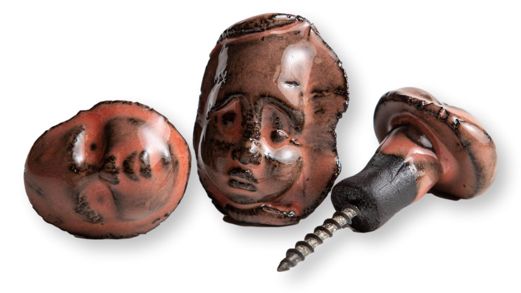 Keraamilised riidenagid on unikaalse välimusega käsitöö. Kaetud läikiva pärliroosa glasuuriga
