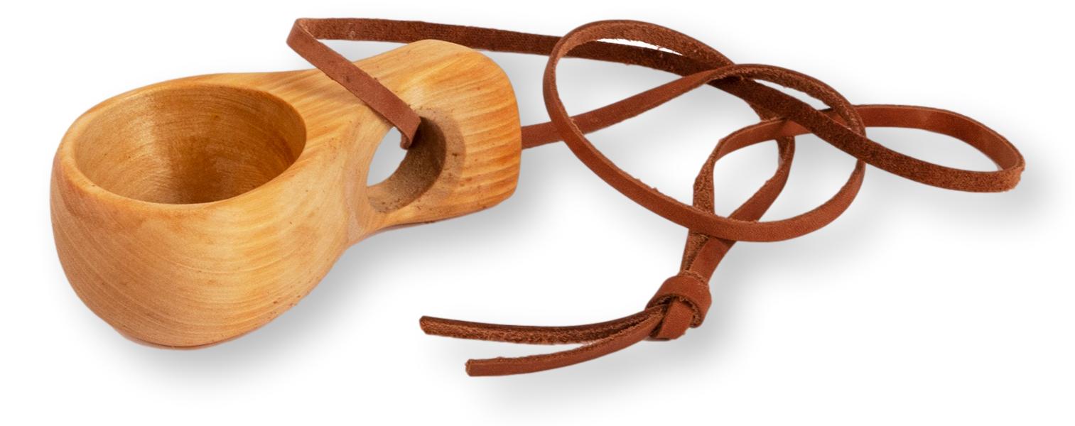 Puidust tass käsitööna valminud kasepuust koos 90 cm nahast nööriga