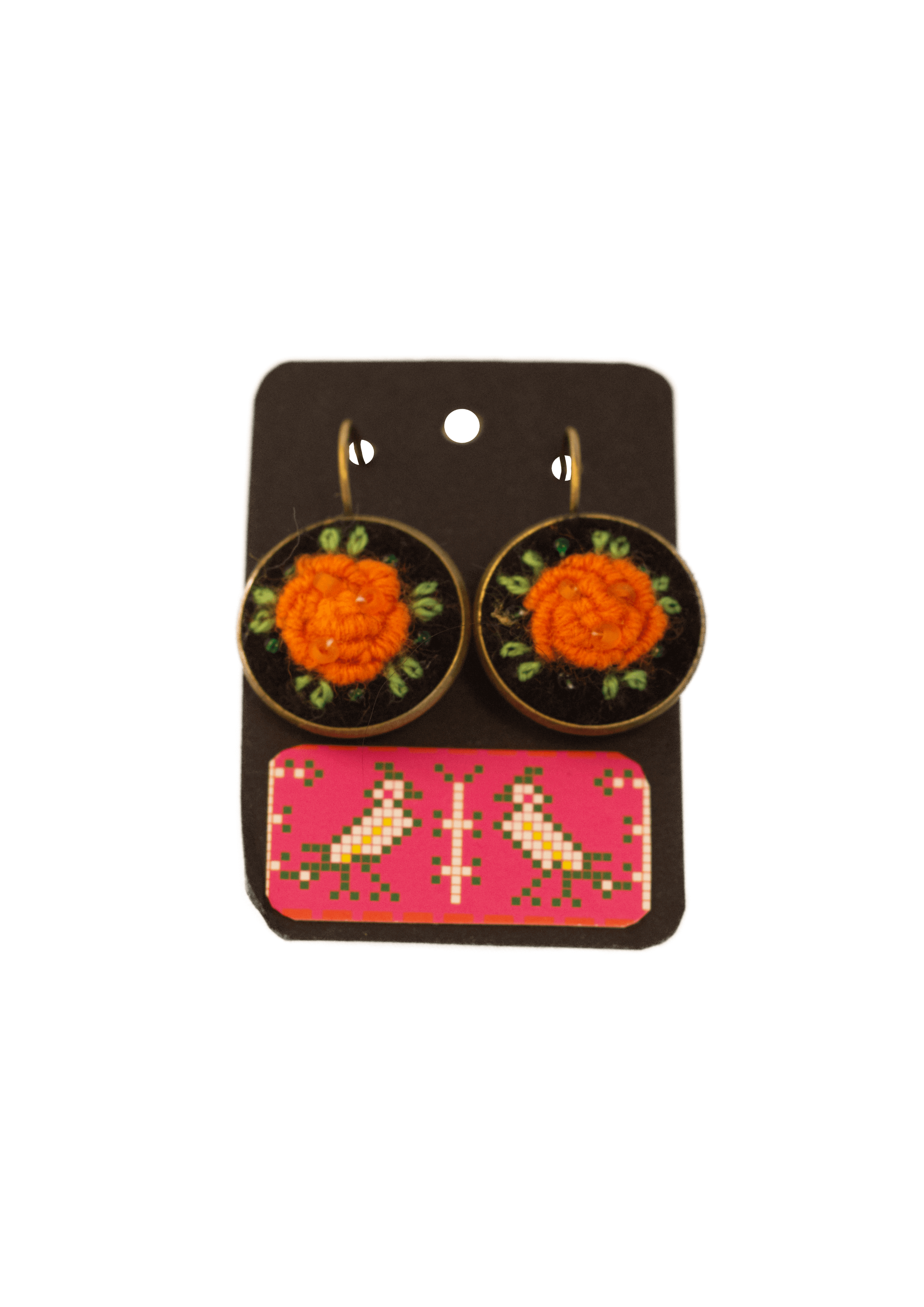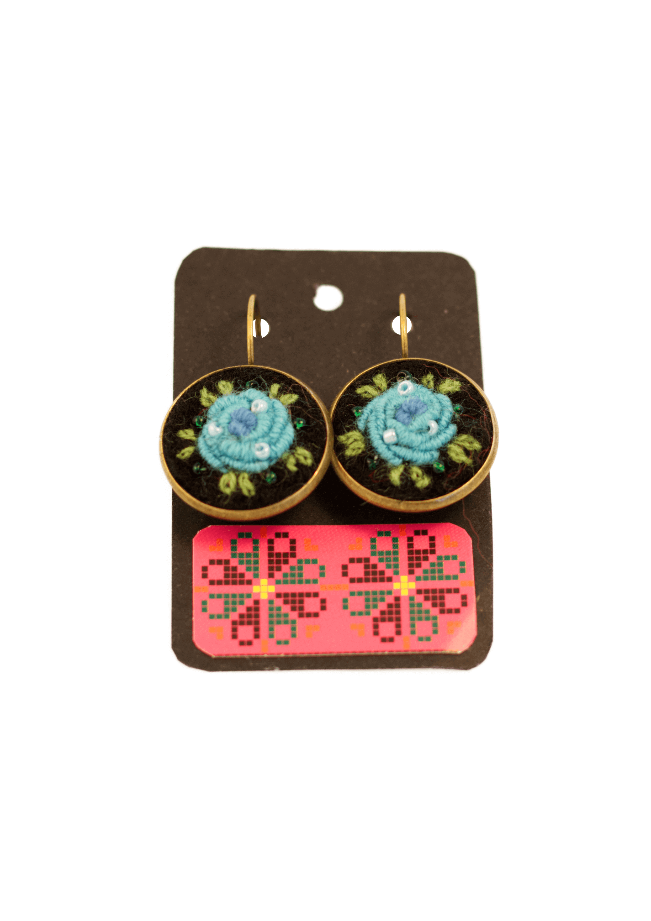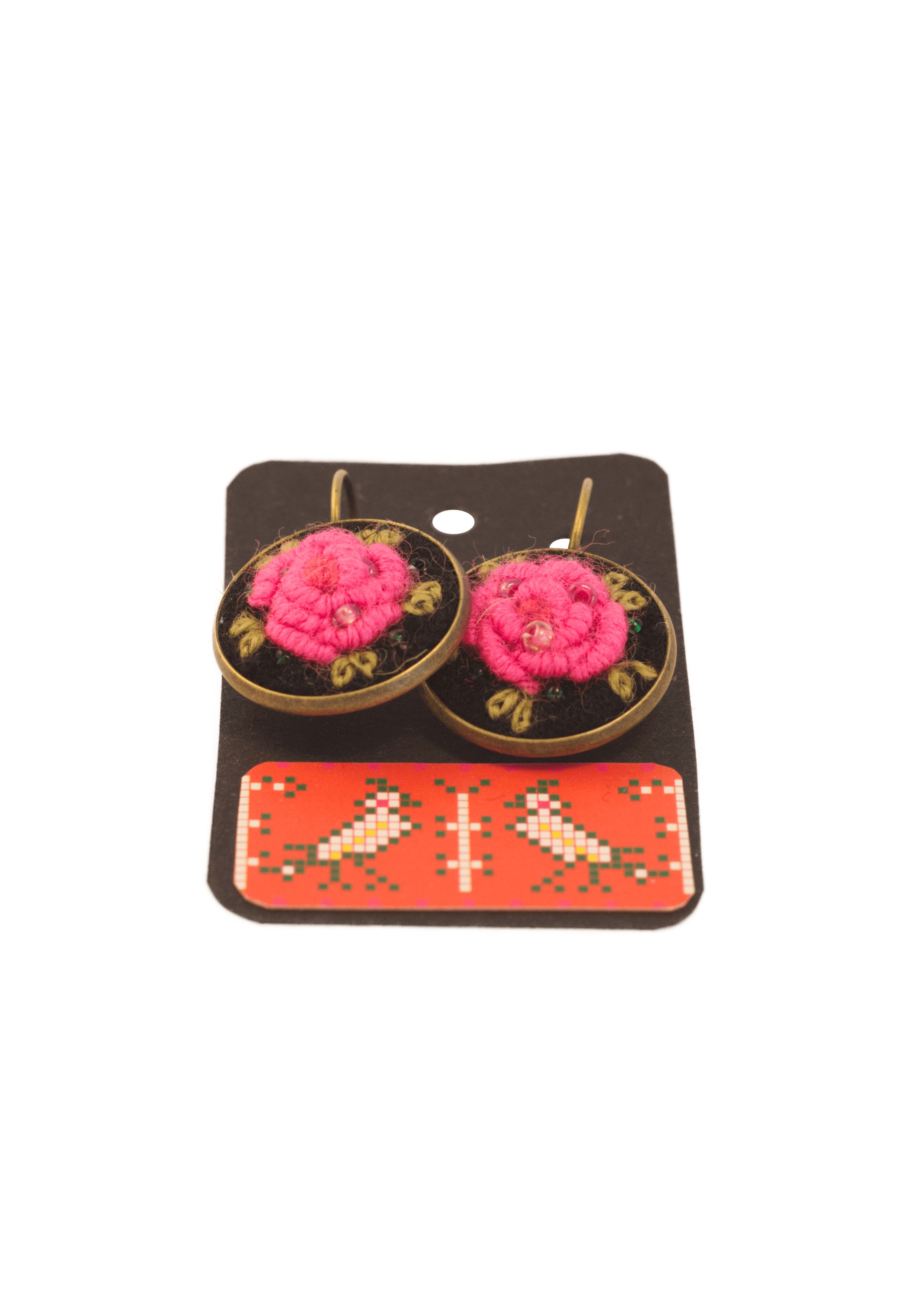 käsitsi tikitud lillega kõrvarõngad