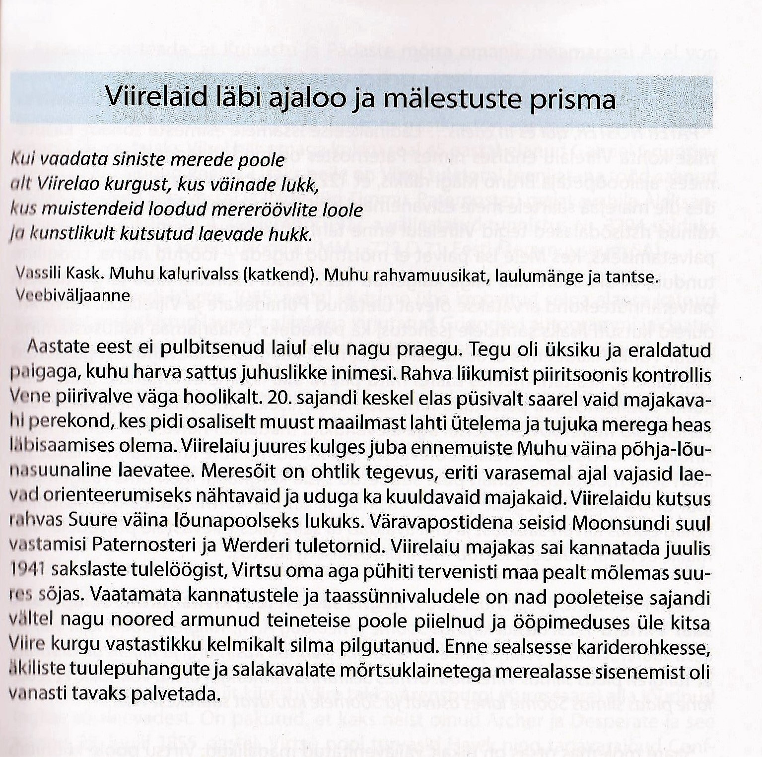 Raamatus kirjeldab autor oma mälestusi ja ülestähendusi Viirelaiu ajaloo kohta.